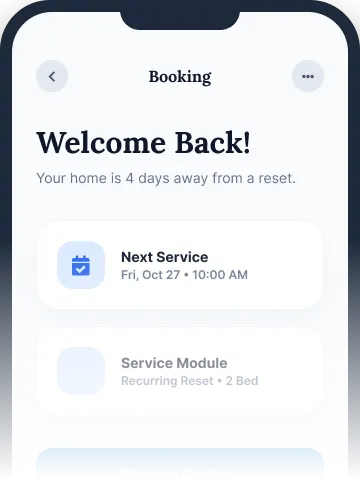 Manage your appointments, view checklists, and rate your clean—all from your phone. Reclaim your timewith a tap.